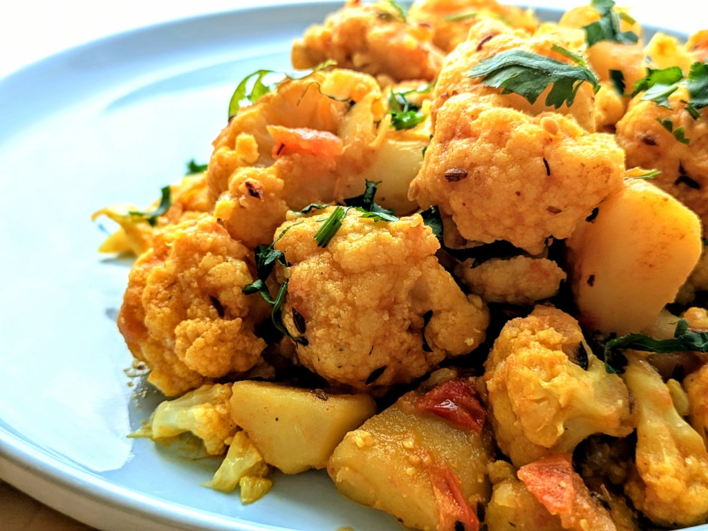 Le chou-fleur accompagné de pommes de terre et d’épices simples est un plat omniprésent dans les cuisines, qu’il s’agisse de repas modestes du quotidien ou de festins extravagants lors de mariages. La version varie selon la complexité des méthodes, des ingrédients et des épices bien sur. Ce légume polyvalent est apprécié pour sa capacité à se marier avec différents assaisonnements, tout en restant une star dans l’assiette. Traditionnellement servi avec le célèbre dal, du riz, du chuira (riz écrasé népalais).